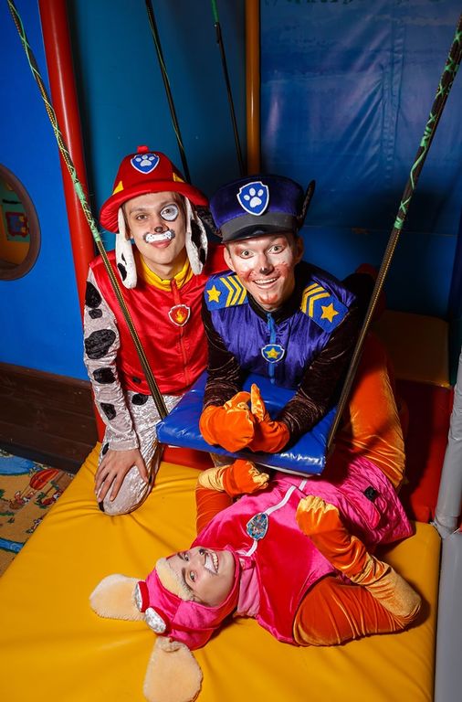 Веселые щенки из мультфильма "Щенячий патруль" (Гонщик, Скай и Маршалл). Они обладают разными уникальными способностями, которые помогают им в непростой работе спасателями. "Отважным щенкам все-все по зубам!" - вот главный лозунг Щенячьего патруля.