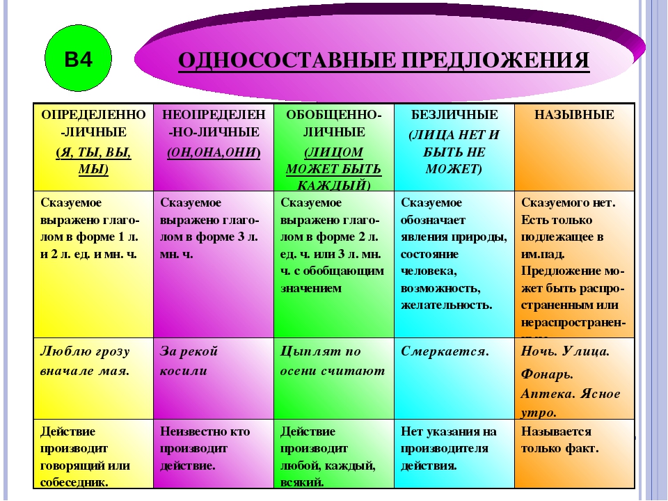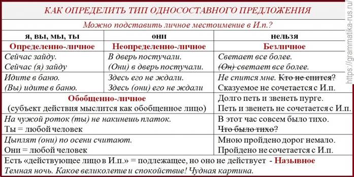 Значит, всего односоставные предложения бывают пяти типов. Каждый имеет своё название:
