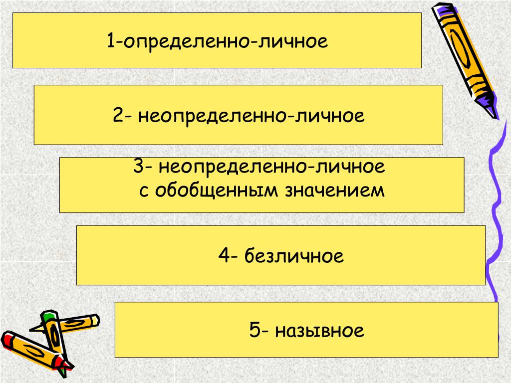 Определенно-личные, неопределенно-личные, обобщенно-личные и безличные предложения
