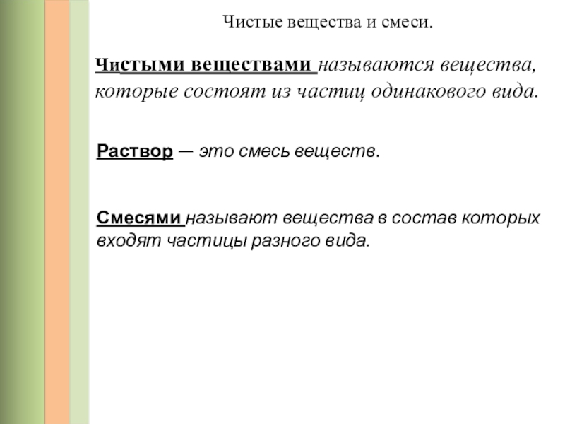 Чистыми веществами называются вещества, которые состоят из частиц одинакового вида.
