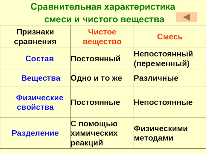Сравнение чистых веществ и смесей