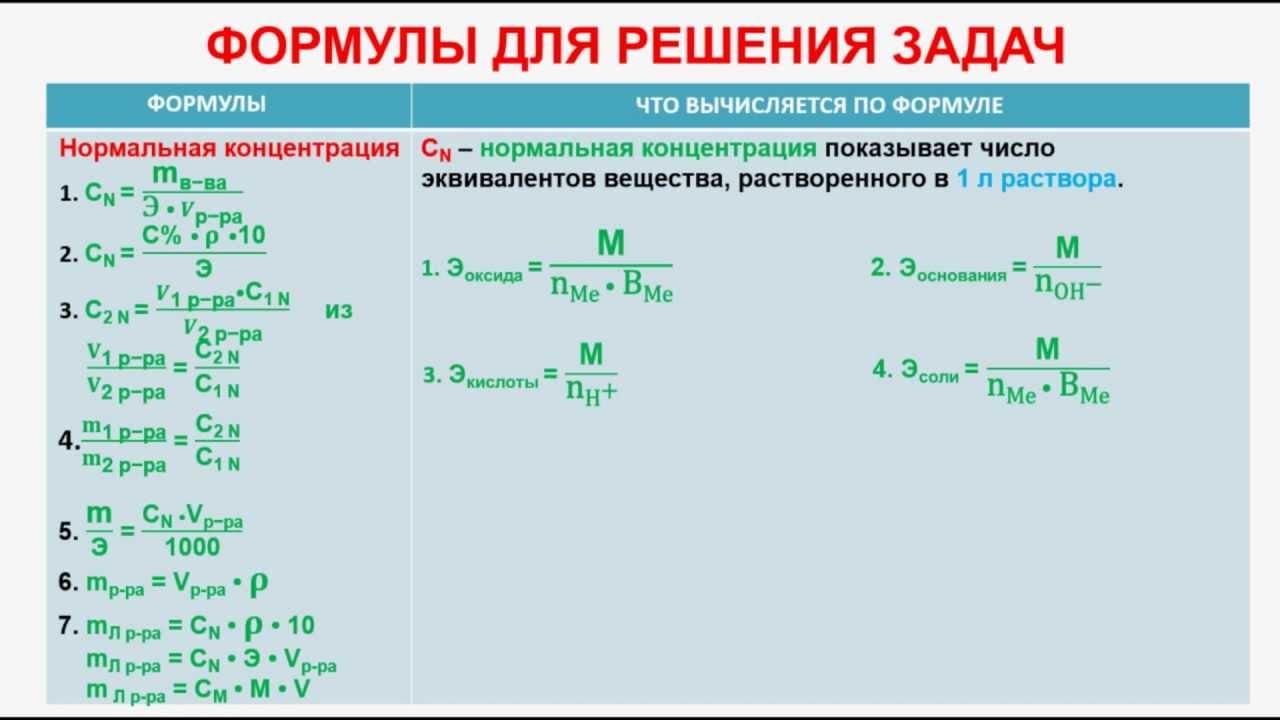 Формулы для решения задач — ХИМИЯ!FOREVER!