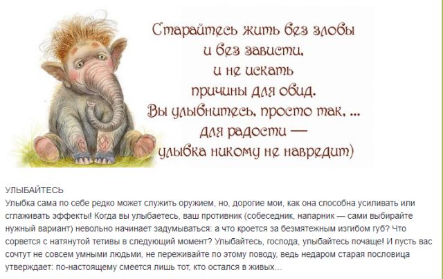 Если вы одиноки и ищете родственную душу, то с улыбкой найдёте её гораздо быстрее. Подумайте, с кем вы охотнее вступите в разговор: с тем, кто улыбается или гримасничает? Улыбка предполагает открытость, она сокращает дистанцию между собеседниками. Улыбка – это уже приглашение.