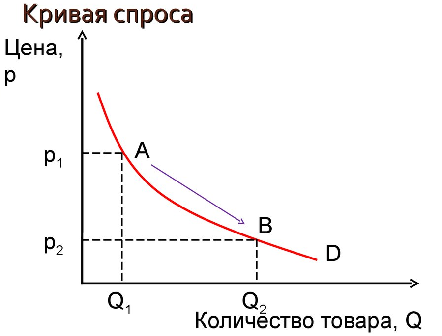 - Сокращение кривой спроса связано с тем, что более высокая цена приводит к снижению спроса