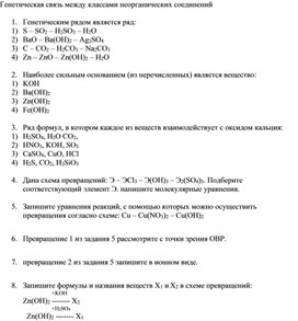 -Выяснить генетическую связь между классами неорганических соединений