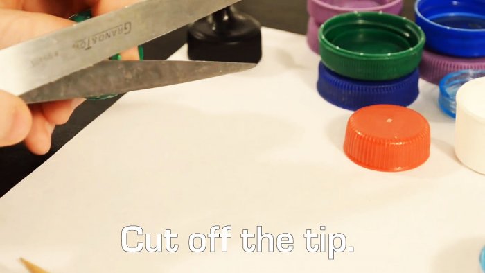 На этом кондитерский шприц своими руками завершен. Таким методом получится создать несколько насадок, чтобы можно было выполнять различные украшения тортов. Кроме крышки, насадками могут быть колпачки от назального спрея.