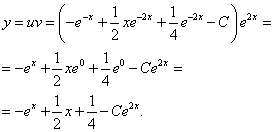 Теперь можем найти решение исходного линейного дифференциального уравнения первого порядка. Оно равно произведению функций u и v, т. е. y = uv. u и v уже нашли.