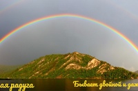 Но, бывают двойные радуги у которых порядок цветов второй, наружной дуги обратный. Эта вторая дуга образована лучами двойного преломления солнечного света в каплях воды. Поэтому наружная радуга всегда бледнее основной внутренней.