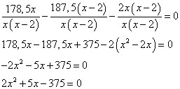 Теперь снова освобождаемся от знаменателя, поскольку он одинаковый для всех выражений. Сводим подобные члены, приравниваем уравнение к нулю и получаем квадратное уравнение: