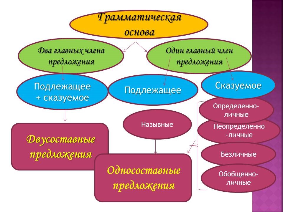 Односоставные предложения со сказуемым делятся на четыре группы: