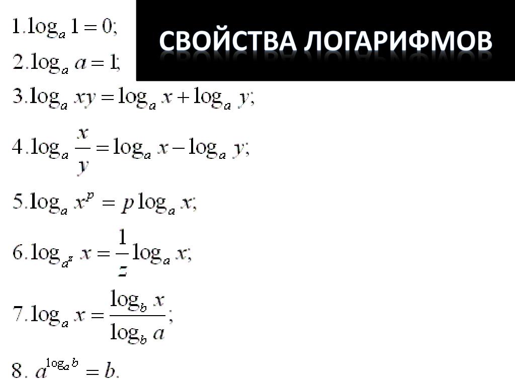 \end{array}}}\]Логарифмы. Свойства логарифмов. Формулы с логарифмами. Десятичные, натуральные логарифмы, основное логарифмическое тождество