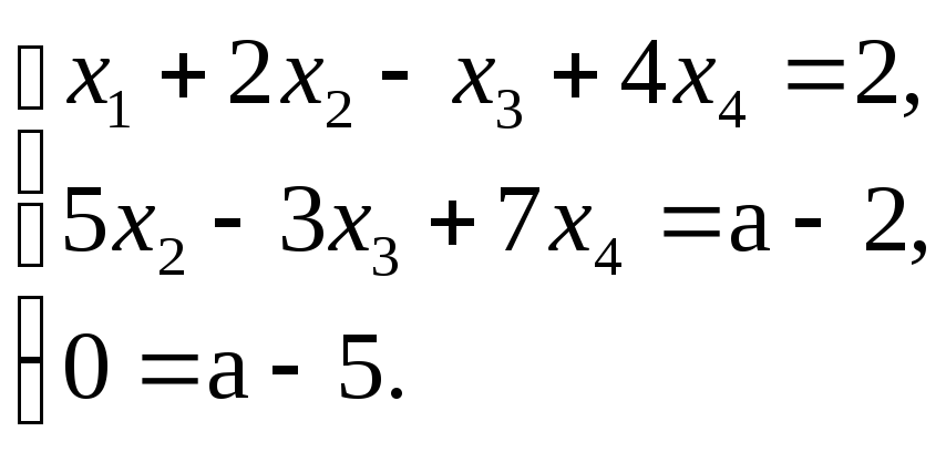 В полученной системе ступенчатого вида есть противоречивое уравнение. Тогда ни один набор чисел Не удовлетворяет системе, и система (1) не имеет решений.