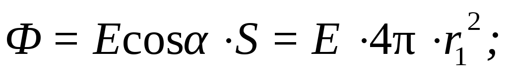 Внутри сферы r1 < r0 (рис.12.9) напряжённость Е = 0, так как сфера радиусом r2 внутри никаких зарядов не содержит и, по теореме Гаусса, поток вектора сквозь такую сферу равен нулю.