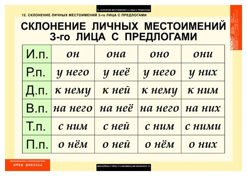 Конспект урока русского языка в таблице. Тема «Понятие о местоимении. Личные местоимения».