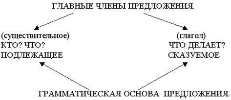 Члены предложения: (подлежащее и сказуемое) главные члены, второстепенные члены.