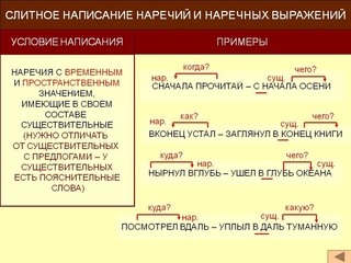 Кроме того, некоторые наречия относятся к положению относительно направления движения.