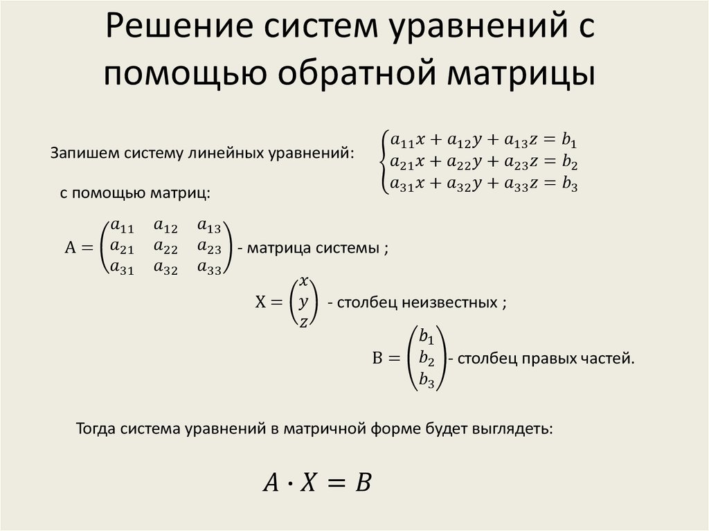 Пример решения системы линейных уравнений с помощью метода обратной матрицы