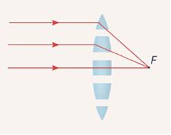 Данную линзу можно представить как совокупность призм, склеенных в одно целое. Мы знаем, что всякая прима, относительный показатель преломления которой больше единицы, отклоняет луч в сторону своего основания. Поскольку мы имеем дело с набором линз, преломляющие углы которых монотонно уменьшаются при удалении от главной оптической оси, то и углы, на которые эти призмы преломляют лучи параллельного пучка, будут различными.