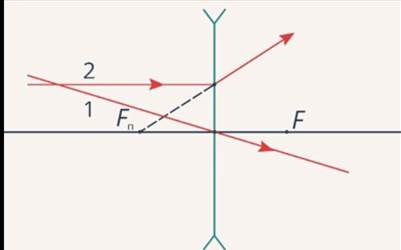 2. Луч, который идет параллельно главной оптической оси и на небольшом расстоянии от нее, после преломления проходит через главный фокус линзы.