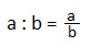 Для обозначения отношения чисел используется знак деления «:» либо черта дроби.