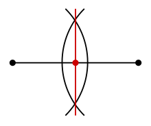 С использованием теоремы Мора — Маскерони возможно также нахождение середины отрезка с помощью одного только циркуля: на первом шаге для отрезка (AB){\displaystyle (AB)} строится точка C{\displaystyle C}, симметричная точке A{\displaystyle A} относительно точки B{\displaystyle B}; на втором шаге строится инверсия точки C{\displaystyle C} относительно окружности радиуса |AB|{\displaystyle |AB|} с центром в точке A{\displaystyle A}; полученная точка является серединой отрезка (AB){\displaystyle (AB)}[1][2][3].