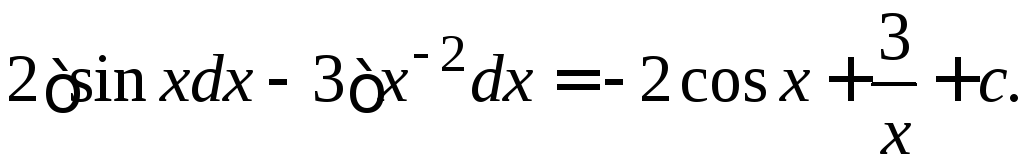 В следующем примере уже обращаемся к таблице интегралов, которая будет дана в параграфе 3, после свойств неопределённого интеграла. Делаем это до ознакомления со всей таблицей, чтобы была понятна суть вышеизложенного. А после таблицы и свойств будем пользоваться ими при интегрировании во всей полносте.