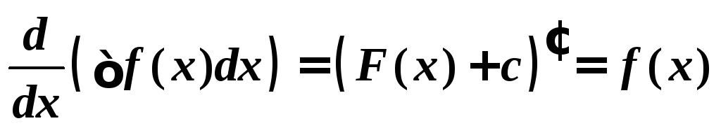 Факт 4. Теорема 1. Производная неопределённого интеграла равна подынтегральной функции, а его дифференциал – подынтегральному выражению.