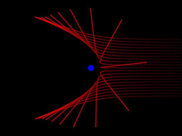 Давайте посмотрим еще одну картину, которая характеризует рассеивание a-частиц на той массивной частице, наличие которой предсказал Резерфорд в атоме (рис. 3).
