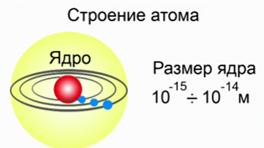 Крупную частицу, которая находится внутри атома, Резерфорд назвал ядром. И даже оценил его размеры. По оценке Резерфорда, размеры ядра составили 10-14–10-15м. Этот объект был очень и очень мал по своим размерам по сравнению с атомом. Атом имеет размер порядка 10-10м. При этом практически вся масса атома была сосредоточена именно в ядре. И именно вокруг ядра обращаются электроны.