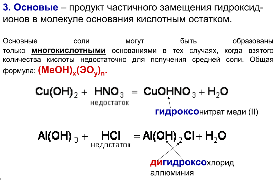 - Нерастворимые основания получаются в результате взаимодействия щелочей с солями.