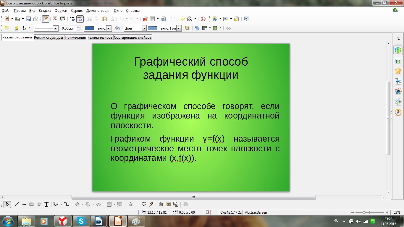 Графический способ представления информации часто является одним из наиболее удобных для ее анализа. Поэтому для исследования функций нам нужно научиться строить их графики (в тех случаях, когда это можно сделать).