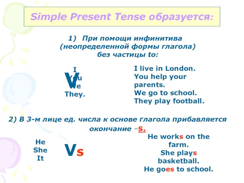Следующие пояснения относятся к теме «Формирование настоящего простого» и могут быть полезны: