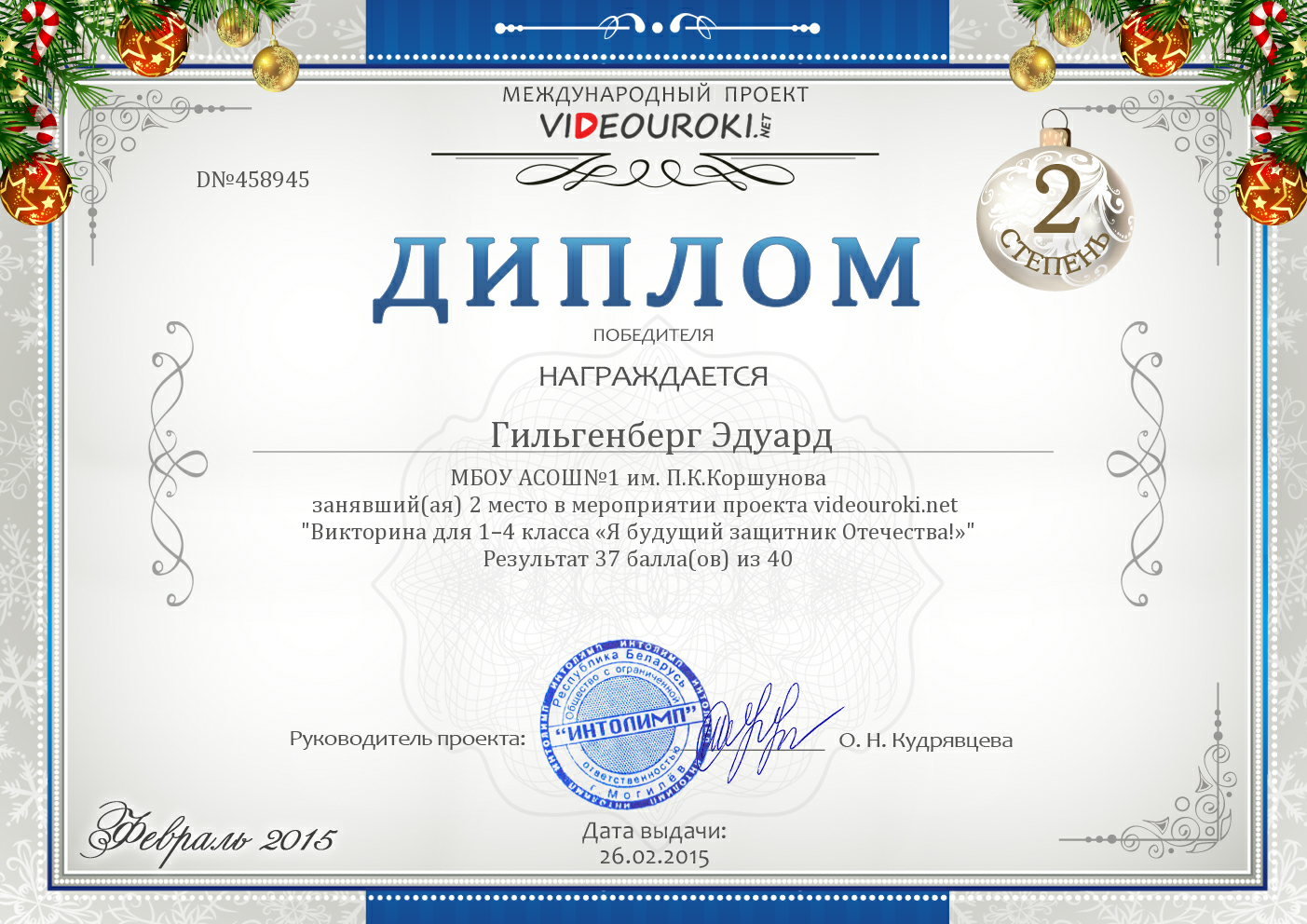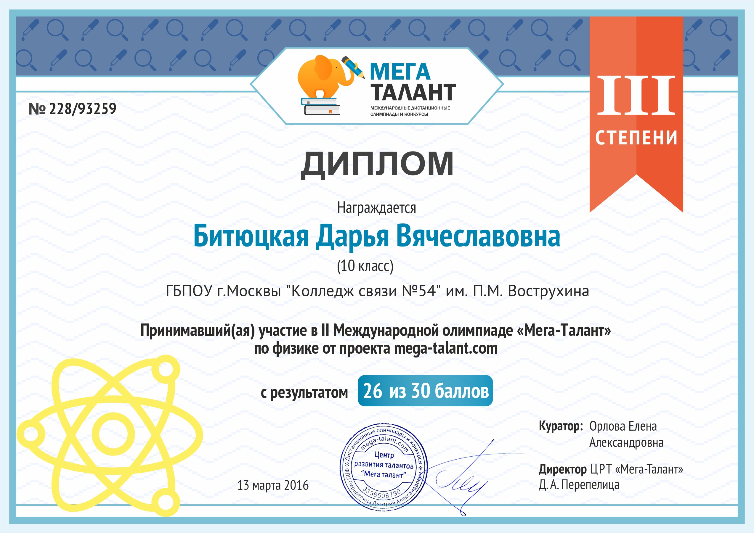 Сертификаты участников заключительного этапа Олимпиады 2016/17 учебного года и похвальные грамоты участникам, продемонстрировавшим высокий уровень знаний, могут быть, при наличии запроса участника, направлены в электронной форме. Соответствующий запрос необходимо направить на электронный адрес Оргкомитета ([email protected], тема письма —«Запрос сертификата участника (похвальной грамоты) Олимпиады»).