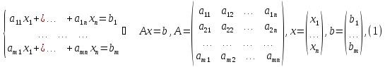Рассмотрим систему n-линейных алгебраических уравнений с n-неизвестными: