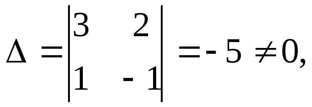 Сначала убедимся в том, что определитель матрицы из коэффициентов при неизвестных СЛАУ не равен нулю.
