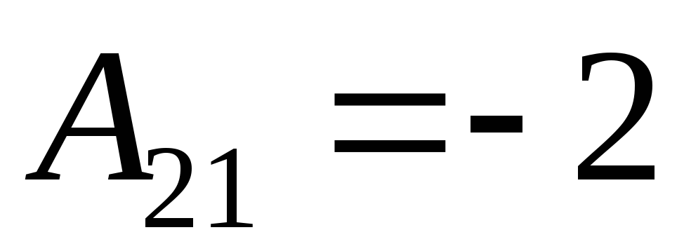 A22=(−1)2+2⋅|3−11−1|=−2;{\displaystyle A_{22}=(-1)^{2+2}\cdot {\begin{vmatrix}3&-1\\1&-1\end{vmatrix}}=-2;}