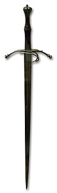 | XVIIIb | Узкий и длинный клинок с очень длинной рукоятью (25-28 см), рассчитанной на полноценный двуручный хват. Позднее объединён Оукшоттом с типом XVIIIa. Преимущественно немецкий тип. | 81-106,5 | 1410 — 1510 G, H, I, J, K, Т, Т1-Т5 1, 2, 10 или любой | |