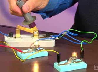Рис. 3. Различный накал лампочек в момент включения цепи