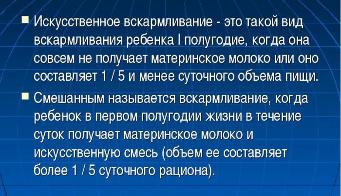 Искусственное вскармливание –это вид кормления, при котором малыш на первом году своей жизни не получает маминого молока и питается только искусственными смесями.