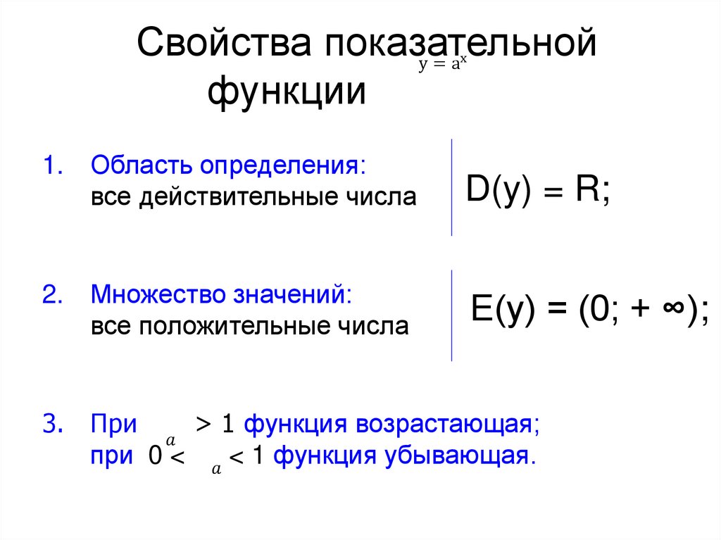 EXP1 — Определение экспоненциальной функции : Если f (x) — функция, которую можно записать в форме f (x) = a x , где a> 0, a ≠ 1 и x — любое действительное число, тогда f (x) — экспоненциальная функция, а «a» называется «базой».