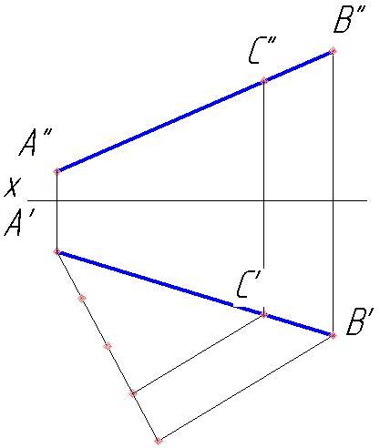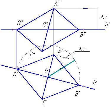ΠΠ°Ρ ΠΎΠ΄ΠΈΠΌ ΠΈΡΡΠΈΠ½Π½ΡΡ Π²Π΅Π»ΠΈΡΠΈΠ½Ρ ΠΎΡΡΠ΅Π·ΠΊΠ° ΠΠ ΠΌΠ΅ΡΠΎΠ΄ΠΎΠΌ ΠΏΡΡΠΌΠΎΡΠ³ΠΎΠ»ΡΠ½ΠΎΠ³ΠΎ ΡΡΠ΅ΡΠ³ΠΎΠ»ΡΠ½ΠΈΠΊΠ° ΠΈ, ΡΠ²Π΅Π»ΠΈΡΠΈΠ² Π΅Π΅ Π² 1,5 ΡΠ°Π·Π°, ΠΎΡΠΊΠ»Π°Π΄ΡΠ²Π°Π΅ΠΌ Π½Π° h’ Π΄Π»Ρ ΠΏΠΎΠ»ΡΡΠ΅Π½ΠΈΡ ΠΏΡΠΎΠ΅ΠΊΡΠΈΠΉ Π’ ΠΈ D‘. Π» ΠΈ D» Π½Π°Ρ ΠΎΠ΄ΠΈΠΌ Π½Π° h». ΠΠΎΠ»ΡΡΠ΅Π½Π½ΡΠ΅ ΠΏΡΠΎΠ΅ΠΊΡΠΈΠΈ ΡΠΎΡΠ΅ΠΊ ΡΠΎΠ΅Π΄ΠΈΠ½ΡΠ΅ΠΌ Π΄Π»Ρ ΠΏΠΎΠ»ΡΡΠ΅Π½ΠΈΡ ΠΏΡΠΎΠ΅ΠΊΡΠΈΠΉ ΡΠΎΠΌΠ±Π°.