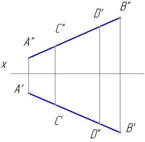 ΠΡΠ»ΠΈ ΡΠΎΡΠΊΠ° Π»Π΅ΠΆΠΈΡ Π½Π° ΠΏΡΡΠΌΠΎΠΉ, ΡΠΎ ΠΏΡΠΎΠ΅ΠΊΡΠΈΠΈ ΡΡΠΎΠΉ ΡΠΎΡΠΊΠΈ Π»Π΅ΠΆΠ°Ρ Π½Π° ΠΎΠ΄Π½ΠΎΠΈΠΌΠ΅Π½Π½ΡΡ ΠΏΡΠΎΠ΅ΠΊΡΠΈΡΡ ΠΏΡΡΠΌΠΎΠΉ. Π’ΠΎΡΠΊΠ° Π‘ Π»Π΅ΠΆΠΈΡ Π½Π° ΠΏΡΡΠΌΠΎΠΉ ΠΠ, Π° ΡΠΎΡΠΊΠ° D β Π½Π΅ Π»Π΅ΠΆΠΈΡ Π½Π° ΡΡΠΎΠΉ ΠΏΡΡΠΌΠΎΠΉ (ΡΠΈΡ.21).