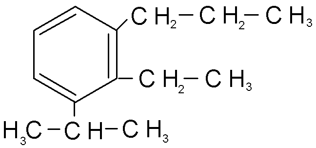 1) п-диизопропилбензол; | 2) м-изобутилтолуол; | 3) 1,3,5-триметилбензол; |