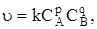 где k – константа скорости реакции; p и q – коэффициенты (определяются экспериментально). Для некоторых простейших реакций коэффициенты p и q равны стехиометрическим коэффициентам уравнения реакции. Например, для реакции