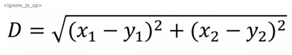 Формула расстояния: учитывая две точки ( x 1 , y 1 ) и ( x 2 , y 2 ), дается расстояние d между этими точками. по формуле: